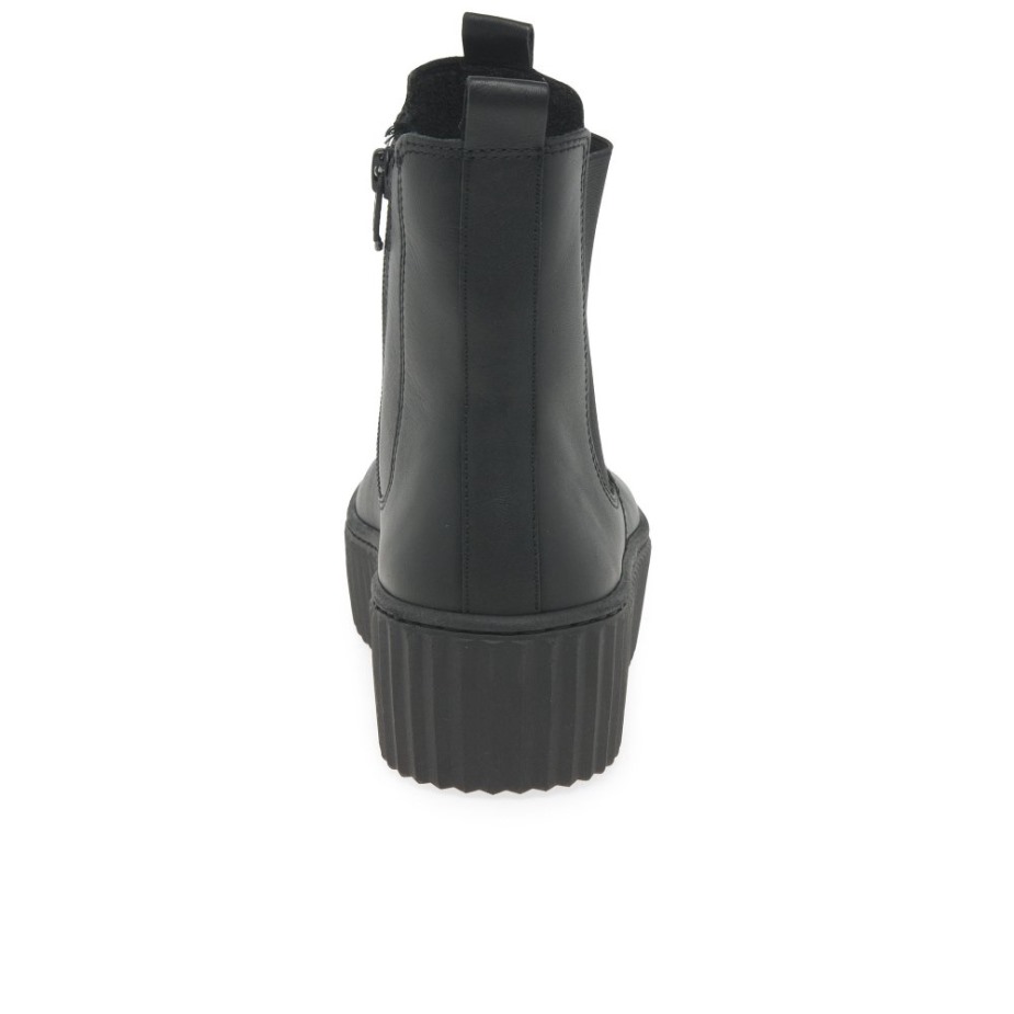 Modieuze Dames Chelsea Boot Van Gabor December Met Een Glad Leren Bovenwerk En Twee Treklipjes. De Zachte, Knusse Voering Van De Laars Zorgt Voor Een Warm Gevoel. De Stevige Platformzool Voegt Comfortabele Hoogte Toe Aan Je Look. Draag Ze Met Midi-rokken En Rokken Voor Een Chique Look.