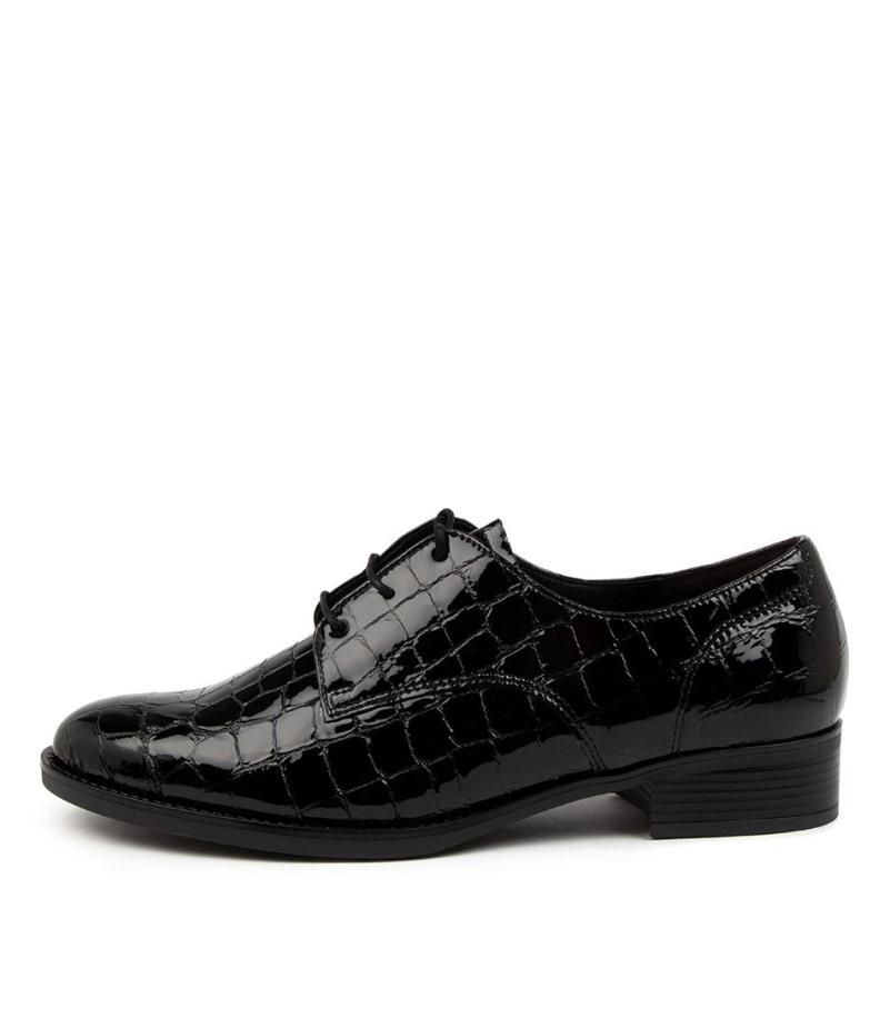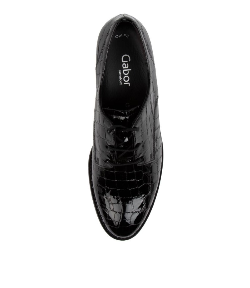 Gemaakt Van Eersteklas Lakleer Met Een Afwerking Met Krokodillenreliëf En Een Vetersluiting Aan De Voorkant Voor Een Verstelbare Pasvorm, Rach By Gabor Is Een Debonaire Derby Die Zowel Professioneel Als Casual Gedragen Kan Worden. Het Tijdloze, Veelzijdige Silhouet Past Overal Bij, Terwijl Het Uitneembare Optifit-voetbed De Hele Dag Schokabsorberende Ondersteuning En Comfort Biedt.