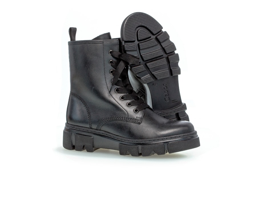 De Gabor 91.730.27 In Het Zwart Is Een Onmisbaar Kledingstuk. Het Bovenwerk Bestaat Uit Hoogwaardig Zwart Leer. Een Ritssluiting Over De Volledige Lengte Aan De Binnenkant Zorgt Voor Gemakkelijk Aan- En Uittrekken, Terwijl De Veters Je Een Persoonlijkere Pasvorm Geven. Deze Laars Maakt Deel Uit Van Het Assortiment Met De Beste Pasvorm En Biedt Een Breder Opstapoppervlak In Het Balgedeelte Van Je Voet Voor Meer Comfort Tijdens Het Lopen. Een Uitneembare Binnenzool Maakt Deze Laarzen Ideaal Voor Mensen Die Op Maat Gemaakte Orthesen Nodig Hebben. De Blokhak Geeft 5cm Hoogte. Hier Bij Gabor Shoes Ireland Denken We Dat De Gabor 91.730.27 In Zwart Geweldig Zou Staan met Panty's En Een Jurk. Bovenmateriaal: Leer Voeringmateriaal: Textiel Zoolmateriaal: Kunstmatig Breedte: F Uitneembare Inlegzolen: Ja Hakhoogte: 5 Cm