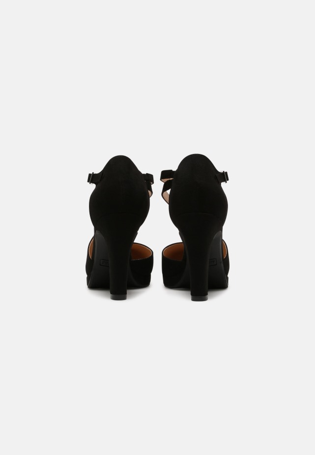 Details Schoentip: Rond Haktype: Trechterhak, Plateau Teen Sluiting: Gesp/strikpatroon: Effen