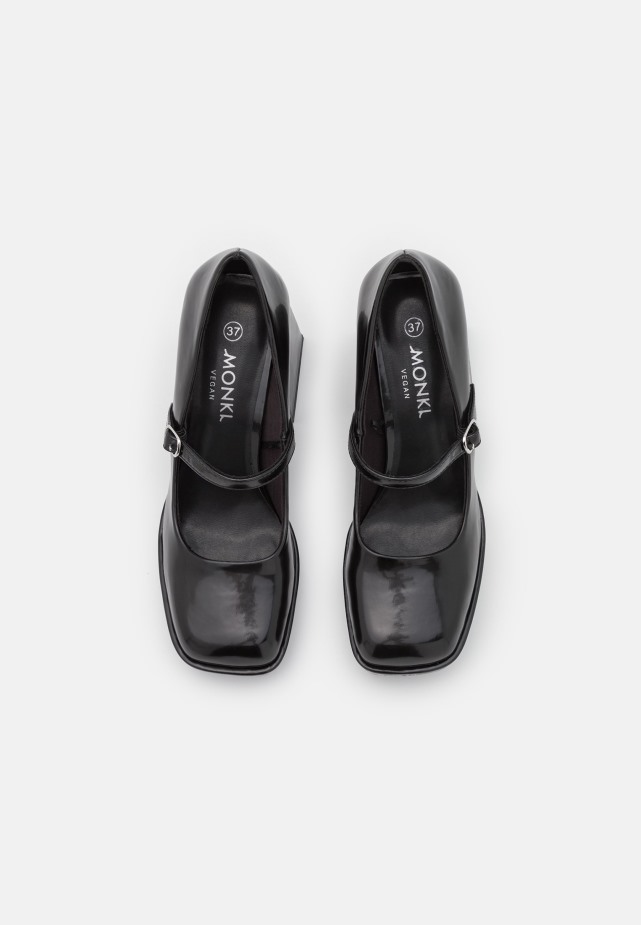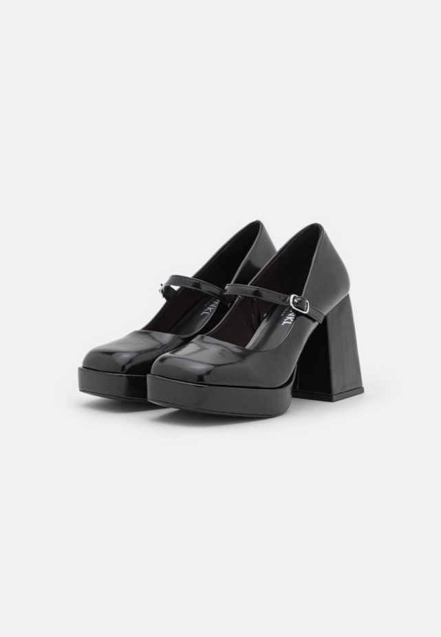 Details Schoentip: Vierkante Neus Haktype: Blokhak, Plateau Teen Sluiting: Gesp/strikpatroon: Effen Details: Elastische Inzet