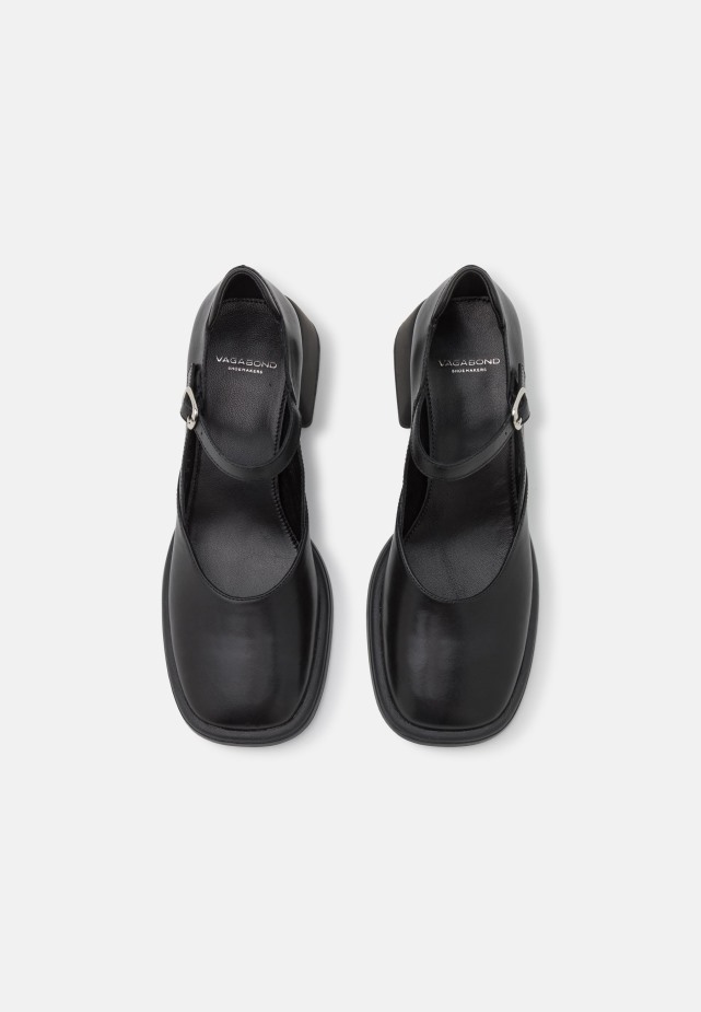 Details Schoentip: Vierkante Neus Haktype: Blokhak Sluiting: Gesp/strikpatroon: Effen Details: Elastische Inzet