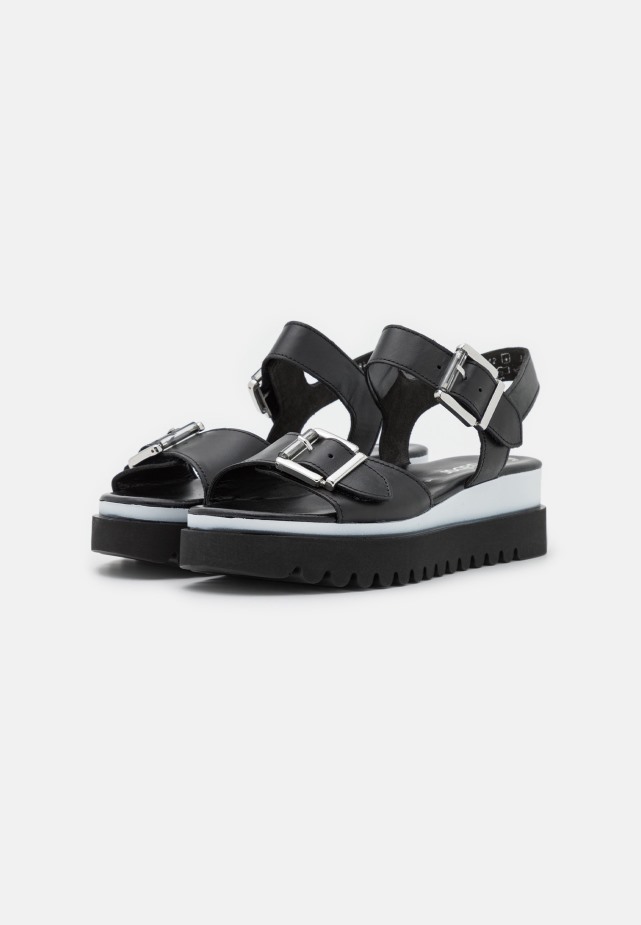 Details Schoentip: Open Haktype: Sleehak, Plateauzool Sluiting: Klittenband Patroon: Effen Details: Gesp