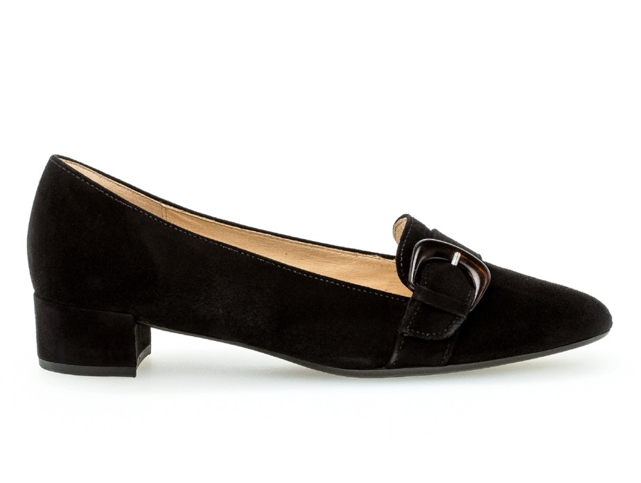 De Gabor 41.432.17 Schoenen In Zwart Suède Geven Een Modern Tintje Aan Een Klassiek, Elegant Design. De Spitse Neus Voegt Stijl Toe Aan De Schoen, Met De Zwarte Gesp En Banddetail Die Een Contrast Vormen Met Het Suède Bovenwerk. De Hak Van 3 Cm Op De Schoen Geeft Ze Draagbare Hoogte. Bij Gabor Shoes Ireland Denken We Dat De Gabor 41.432.17 Schoenen Geweldig Zouden Zijn In Combinatie Met Een Zwarte Pantalon Voor Een Elegante Look. Bovenmateriaal: Leer Voeringmateriaal: Leer Materiaal Zool: Kunstmatig Uitneembare Inlegzolen: Nee Hakhoogte: 3cm