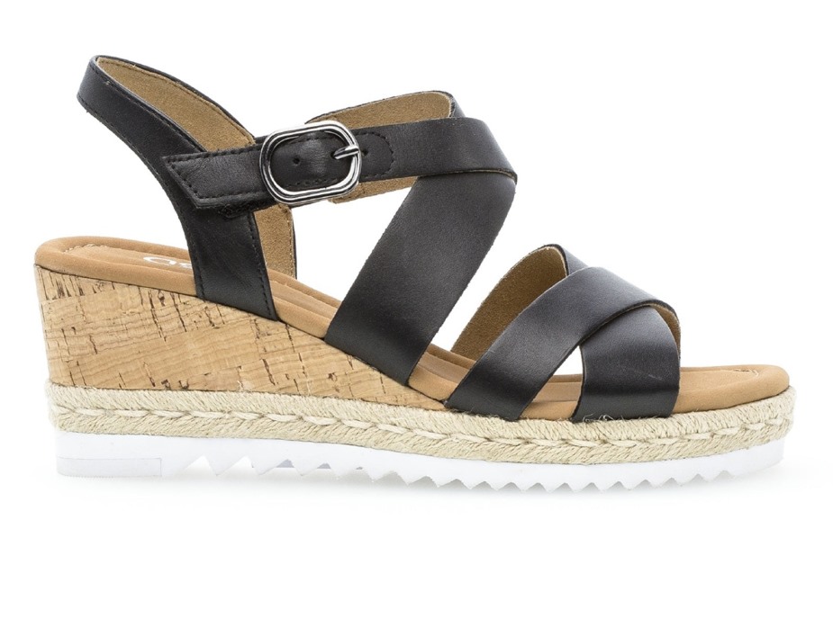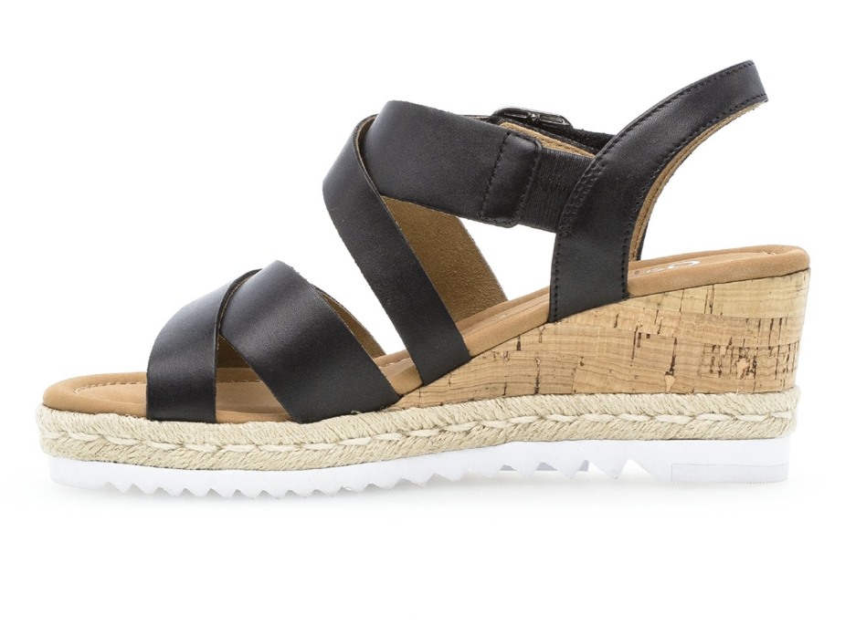 De 82.832 Talbot - 57 Zwarte Sandaal Combineert Casual Stijl Met Een Hoog Draagcomfort. De Hiel Met Kurkeffect Trekt Mooi Samen Met Het Geweven Paneel Eronder En Voegt In Totaal 7 Cm Hoogte Toe. Een Klittenbandsluiting Zorgt Voor Gemakkelijk Aan- En Uittrekken En Is Vermomd Met Een Nepgesp. Bij Gabor Shoes Ireland Denken We Dat De 82.832 Talbot - 57 Zwarte Sandalen Perfect Passen Bij Een Cropped Pantalon. Bovenmateriaal: Leer Materiaal Voering: Leer Materiaal Zool: Kunstmatig Uitneembare Inlegzolen: Nee Hakhoogte: 7cm